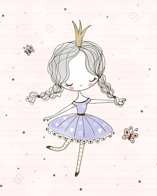 Cute Ballerina Black Ornate Wood Framed Art Print with Double Matting by Blue, Nina
