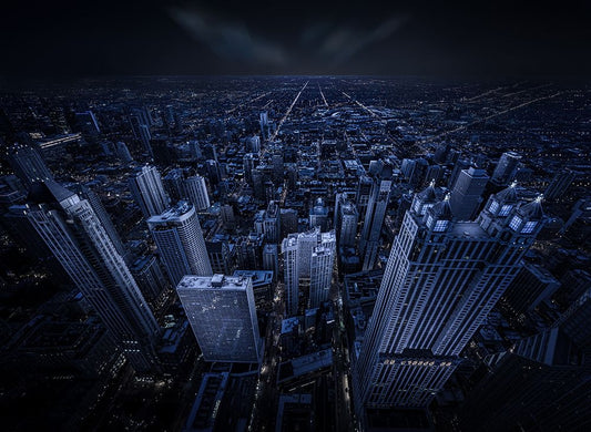 Chicago Blue Hour White Modern Wood Framed Art Print with Double Matting by Tian, Xiaobing