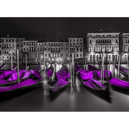 Night shot of grand canal with illuminated buildings and gondolas, Venice, Italy Black Modern Wood Framed Art Print with Double Matting by Frank, Assaf