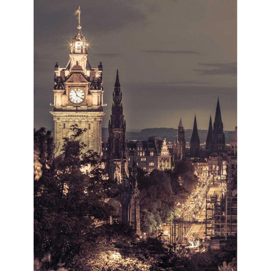 Princess streen and the Balmoral Hotel and night, Edinbrugh, Scotland Black Modern Wood Framed Art Print with Double Matting by Frank, Assaf