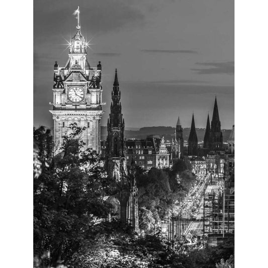 Princess streen and the Balmoral Hotel and night, Edinbrugh, Scotland, FTBR-1800 Black Modern Wood Framed Art Print with Double Matting by Frank, Assaf