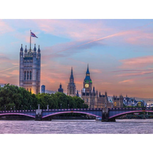 Westminster Abby from river thames, London, UK Black Modern Wood Framed Art Print with Double Matting by Frank, Assaf