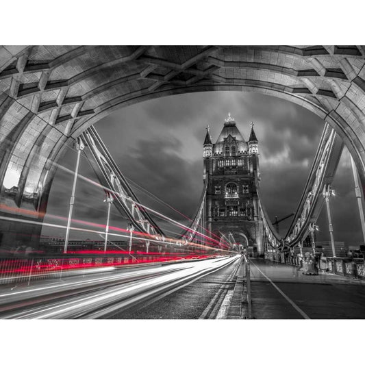 Tower bridge with strip lights, London, UK Black Modern Wood Framed Art Print with Double Matting by Frank, Assaf