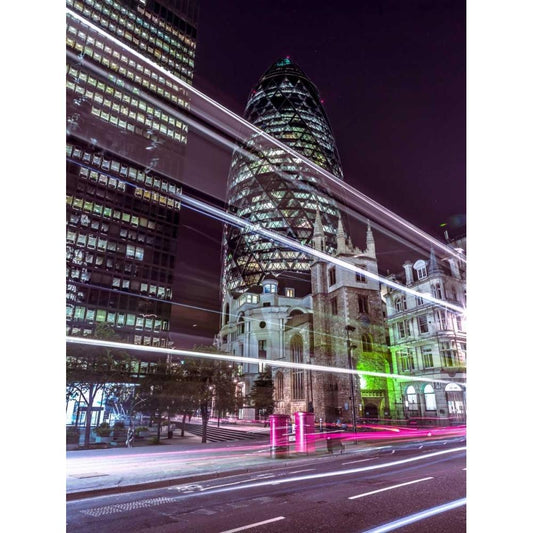 View of London at night, UK Black Modern Wood Framed Art Print with Double Matting by Frank, Assaf