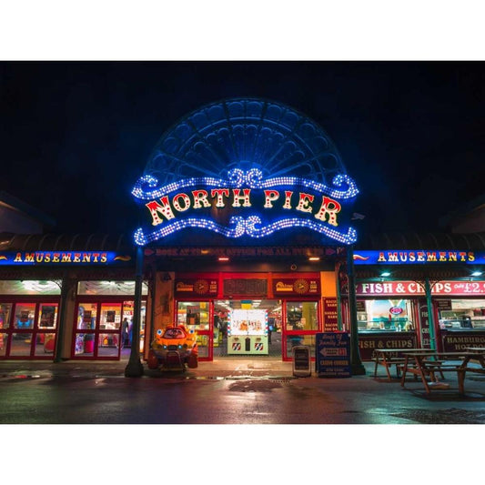 North Pier, Blackpool Black Modern Wood Framed Art Print with Double Matting by Frank, Assaf
