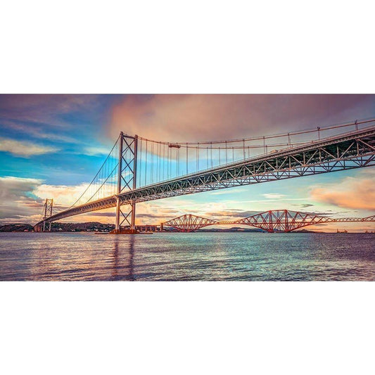 Forth Road Birdge at dusk Black Modern Wood Framed Art Print with Double Matting by Frank, Assaf