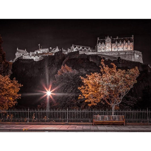 Edinburgh Castle at night, FTBR-1859 Black Modern Wood Framed Art Print with Double Matting by Frank, Assaf