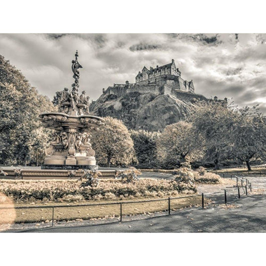 Edinburgh Castle, FTBR-1862 Black Modern Wood Framed Art Print with Double Matting by Frank, Assaf
