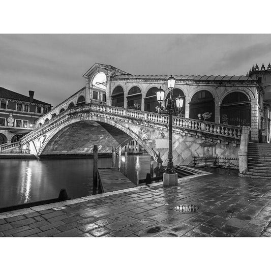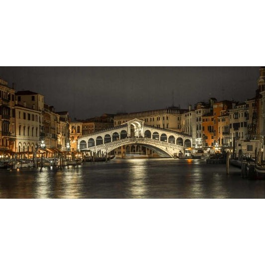 Rialto Bridge at night, Venice, Italy, FTBR-1890 Black Modern Wood Framed Art Print with Double Matting by Frank, Assaf