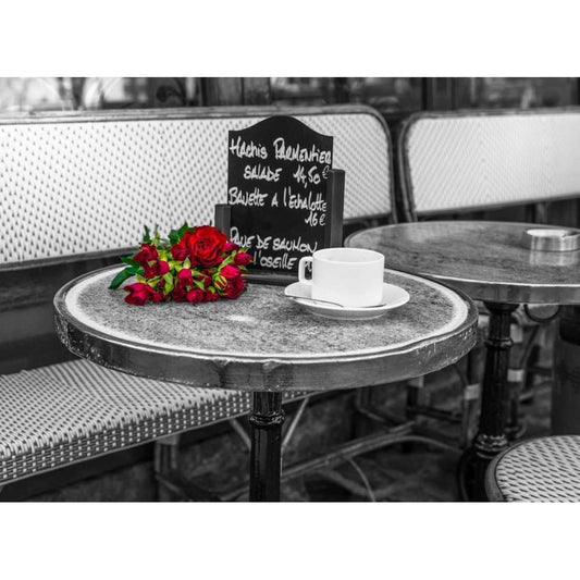 Bunch of flowers on sidewalk cafe table, Paris, France Black Modern Wood Framed Art Print with Double Matting by Frank, Assaf