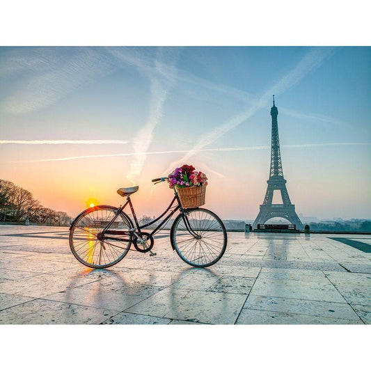 Bicycle and Eiffel tower Black Modern Wood Framed Art Print with Double Matting by Frank, Assaf