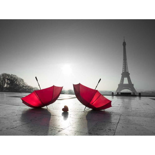Two umbrellas next to the Eiffel tower Black Modern Wood Framed Art Print with Double Matting by Frank, Assaf