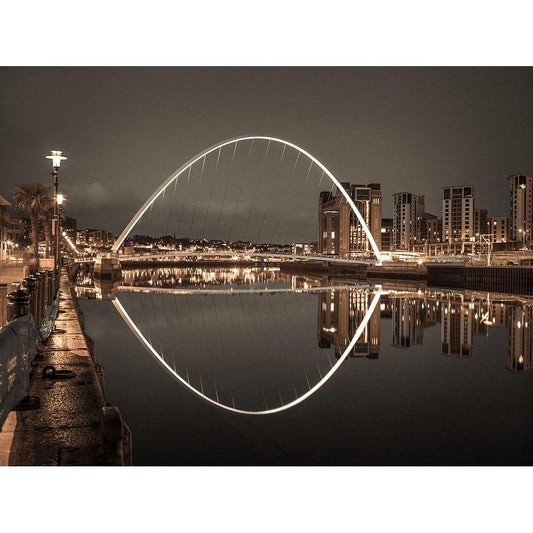 The Millenium Bridge, Newcastle Upon Tyne, FTBR-1882 Black Modern Wood Framed Art Print with Double Matting by Frank, Assaf