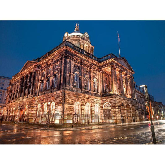 Town Hall Building at night, Liverpool, FTBR-1869 Black Modern Wood Framed Art Print with Double Matting by Frank, Assaf