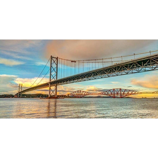 Forth Road Birdge at dusk Black Modern Wood Framed Art Print with Double Matting by Frank, Assaf