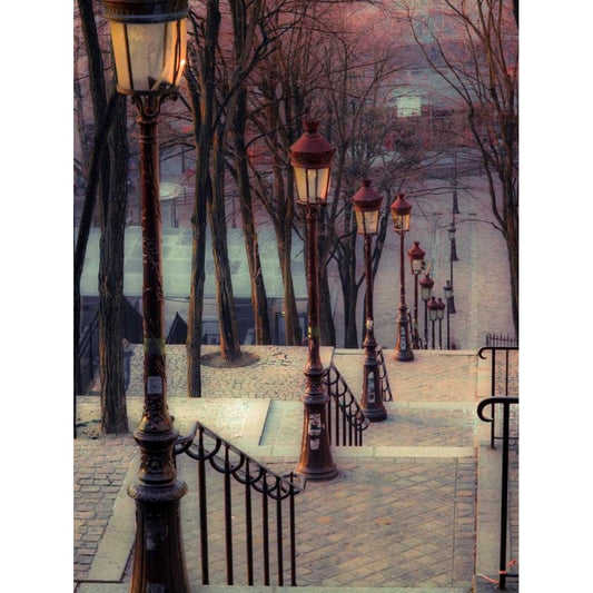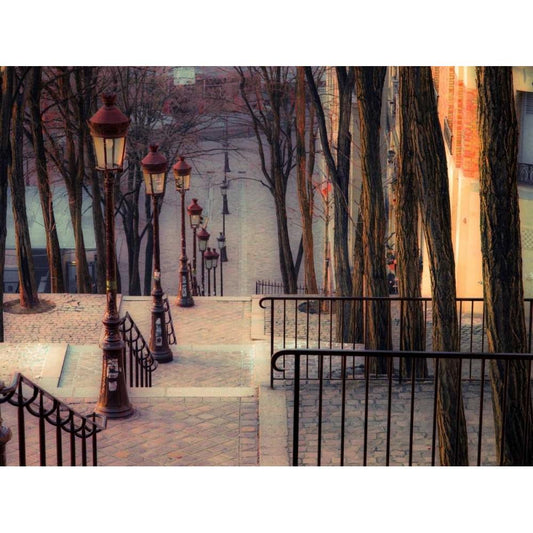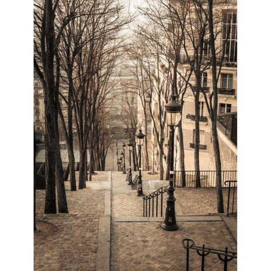 The famous staircase in Montmartre, Paris, France Black Modern Wood Framed Art Print with Double Matting by Frank, Assaf