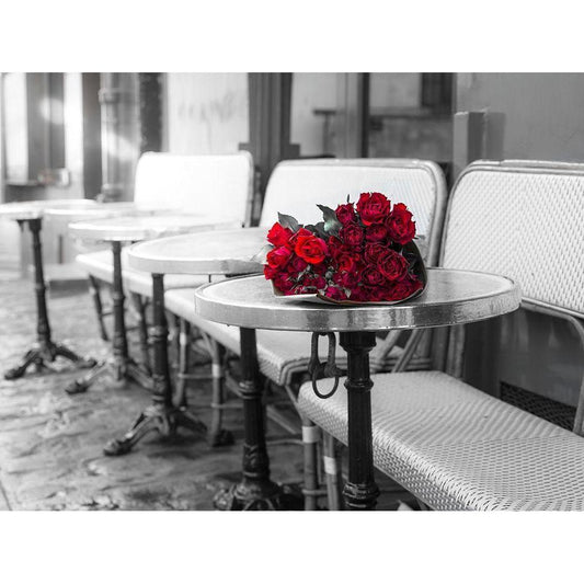 Bunch of flowers on sidewalk cafe table, Paris, France Black Modern Wood Framed Art Print with Double Matting by Frank, Assaf