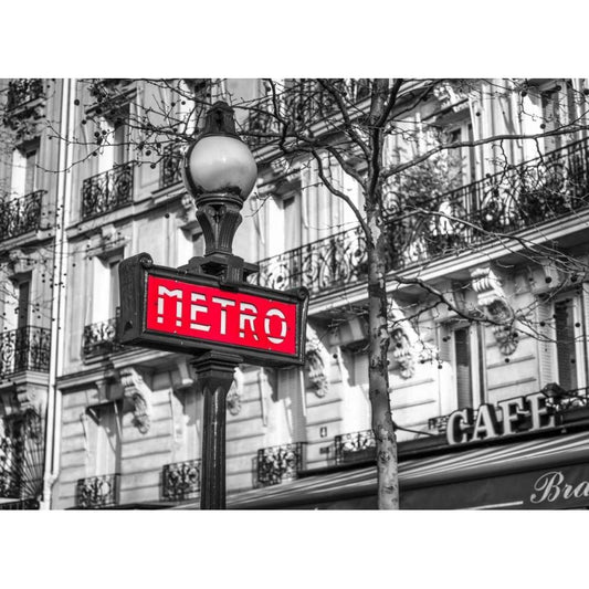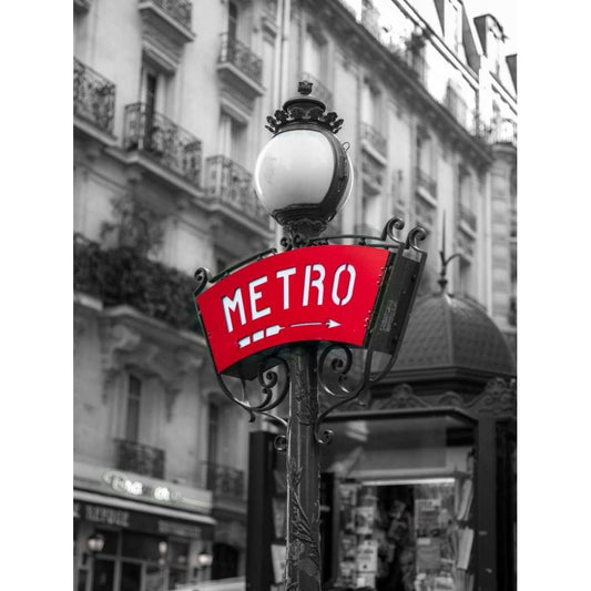 Metro sign post, Montmarte, Paris Black Modern Wood Framed Art Print with Double Matting by Frank, Assaf