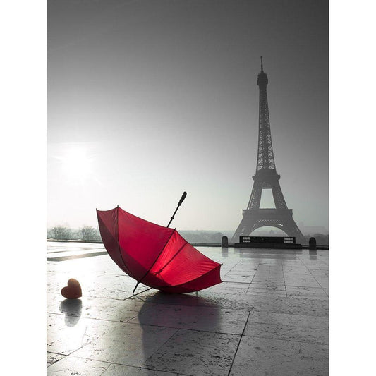 Two umbrellas next to the Eiffel tower Black Modern Wood Framed Art Print with Double Matting by Frank, Assaf