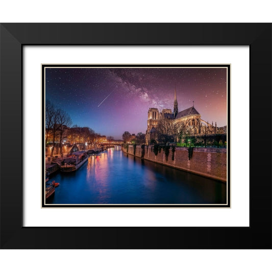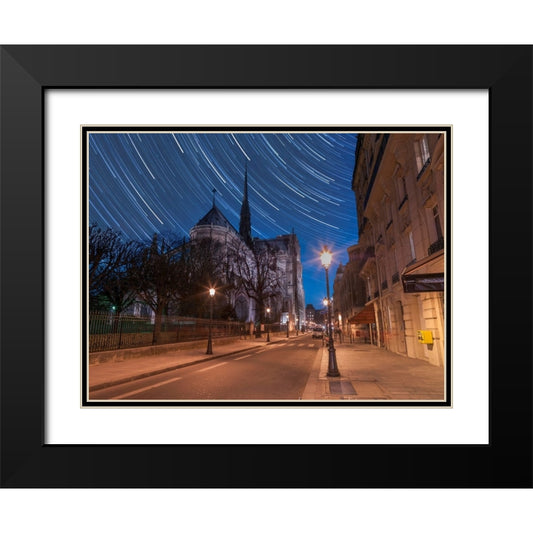 Star Trails above Notre-Dame de Paris Black Modern Wood Framed Art Print with Double Matting by Frank, Assaf