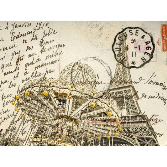 Carousel with the Eiffel tower in the background Black Modern Wood Framed Art Print with Double Matting by Frank, Assaf