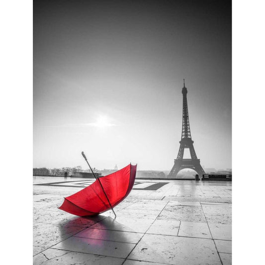 Umbrella in front of the Eiffel tower, Paris, France Black Modern Wood Framed Art Print with Double Matting by Frank, Assaf
