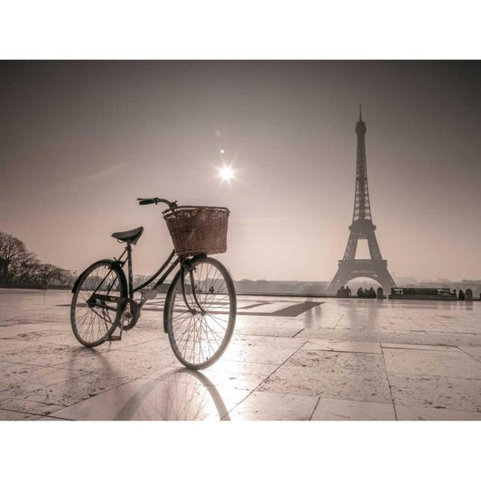 Bicycle in front of Eiffel tower, Paris, France Black Modern Wood Framed Art Print with Double Matting by Frank, Assaf