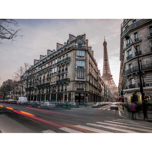 Eiffel tower from city street, Paris, France Black Modern Wood Framed Art Print with Double Matting by Frank, Assaf