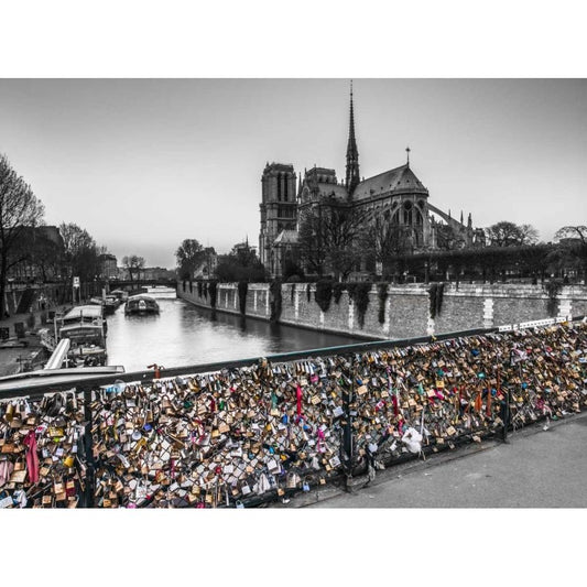 Pont des Arts bridge with love padlocks, Paris Black Modern Wood Framed Art Print with Double Matting by Frank, Assaf