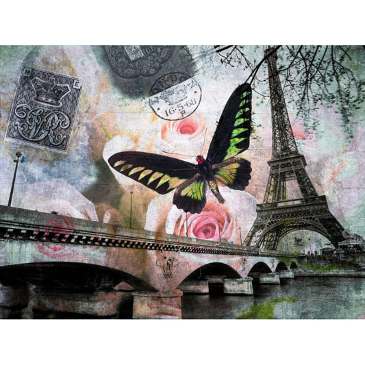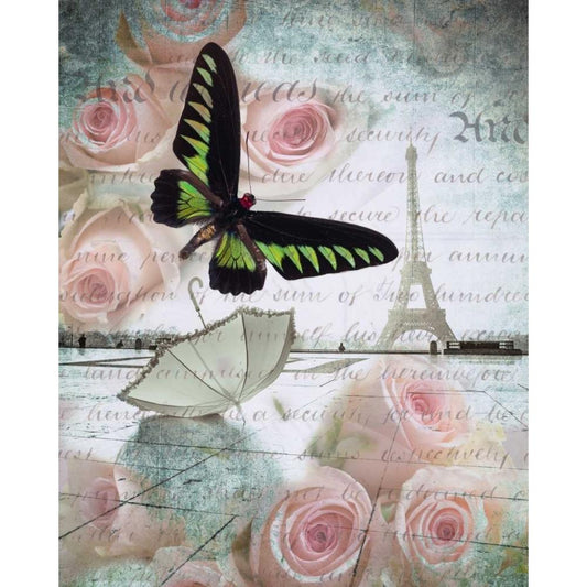 Eiffel tower with butterfly and roses overlay Black Modern Wood Framed Art Print with Double Matting by Frank, Assaf