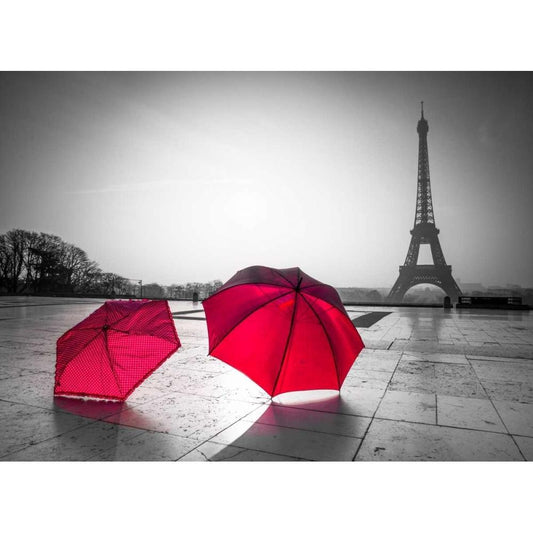 Umbrellas and Eiffel tower Black Modern Wood Framed Art Print with Double Matting by Frank, Assaf