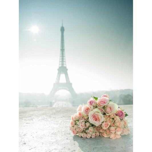 Bunch of roses next to the Eiffel tower Black Modern Wood Framed Art Print with Double Matting by Frank, Assaf