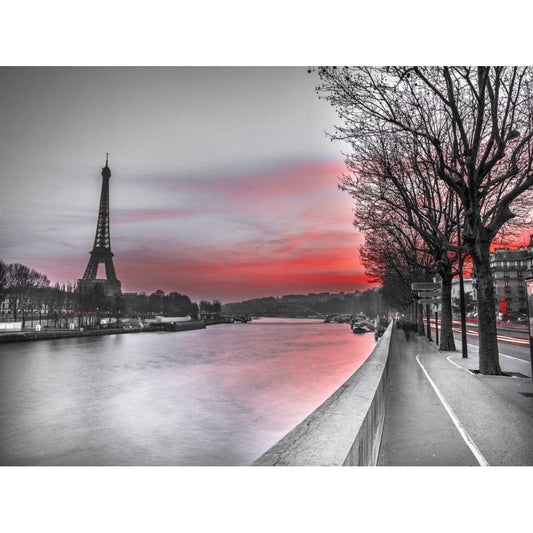The river Seine and the Eiffel tower at dusk Black Modern Wood Framed Art Print with Double Matting by Frank, Assaf
