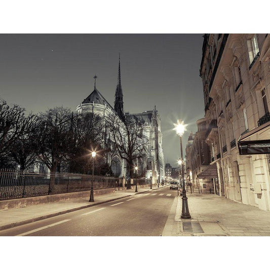 Notre-Dame de Paris at night, France Black Modern Wood Framed Art Print with Double Matting by Frank, Assaf