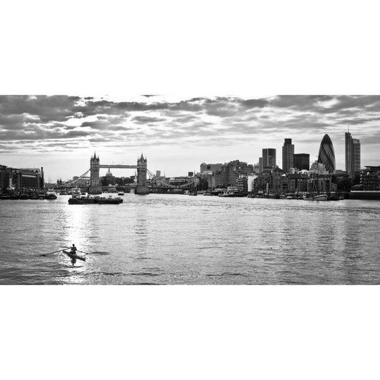 London skyline over river Thames Black Modern Wood Framed Art Print with Double Matting by Frank, Assaf