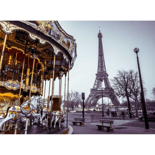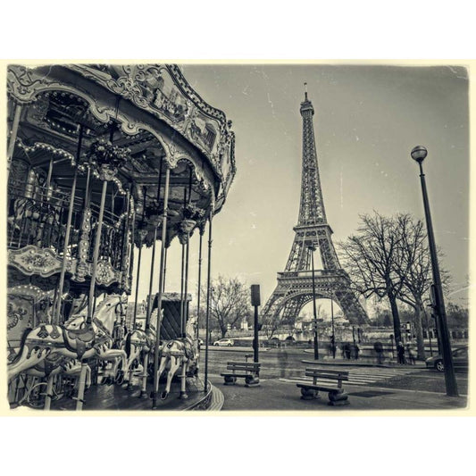 Carousel and the Eiffel tower Black Modern Wood Framed Art Print with Double Matting by Frank, Assaf