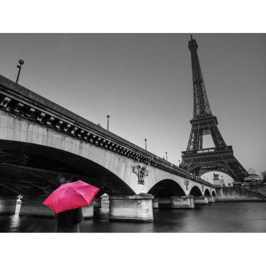 Bridge over river Siene with Eifflel tower in background, Paris, France Black Modern Wood Framed Art Print with Double Matting by Frank, Assaf