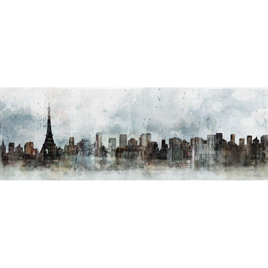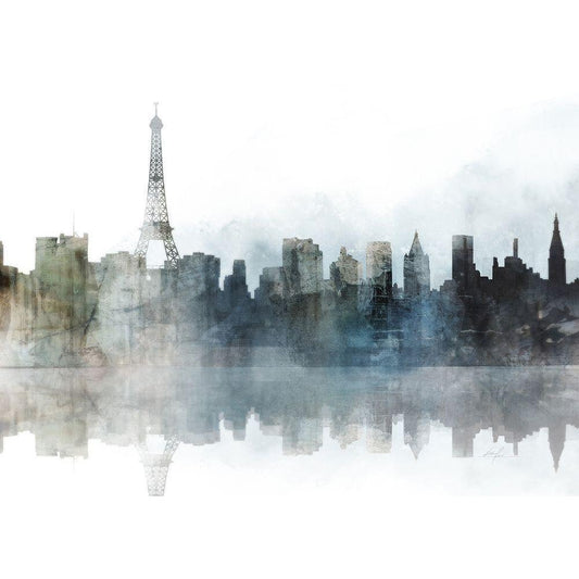Modern Paris Skyline Black Modern Wood Framed Art Print with Double Matting by Roko, Ken