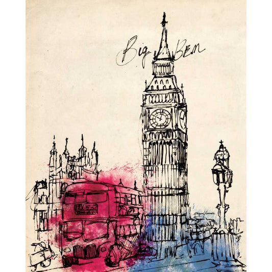 Big Ben in Pen Black Modern Wood Framed Art Print with Double Matting by Yamada, Morgan