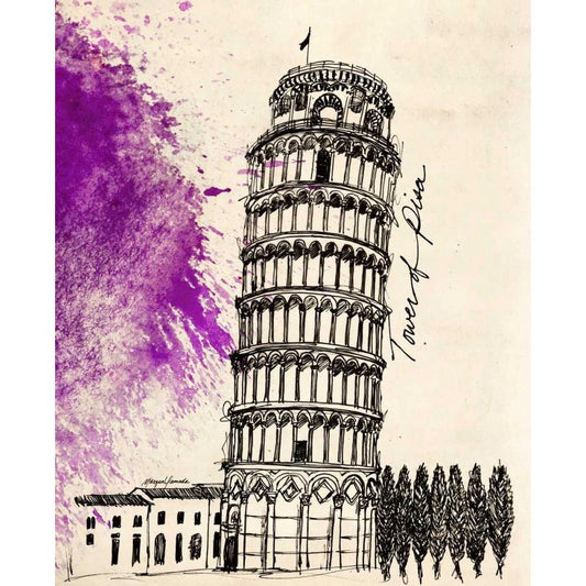 Tower of Pisa in Pen Black Modern Wood Framed Art Print with Double Matting by Yamada, Morgan