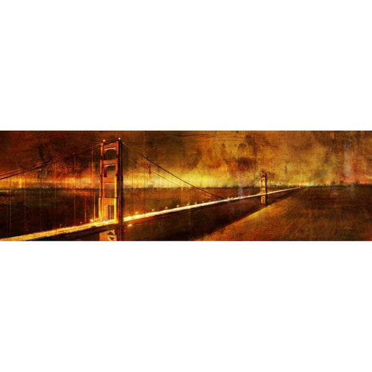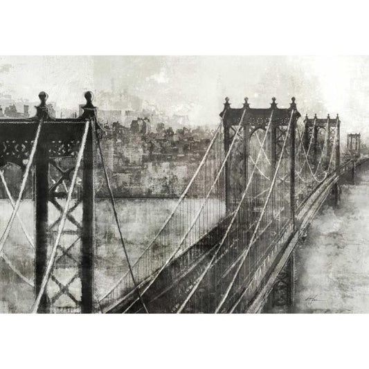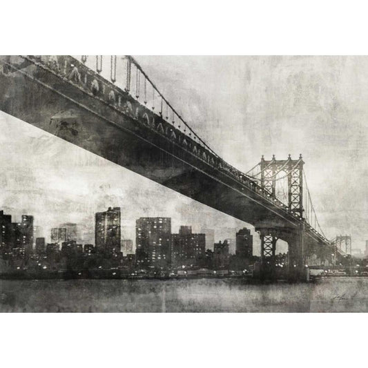 Over the Manhattan Bridge Black Modern Wood Framed Art Print with Double Matting by Roko, Ken