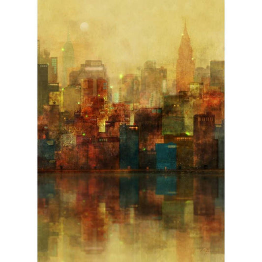 New York After Hours-Square Black Modern Wood Framed Art Print with Double Matting by Roko, Ken