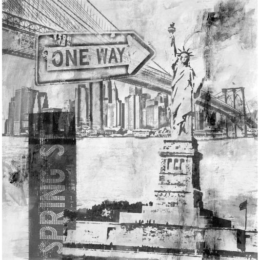 New York One Way Black Modern Wood Framed Art Print with Double Matting by Abbott, Sara