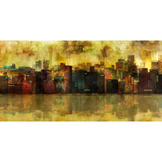 Evening Skyline Black Modern Wood Framed Art Print with Double Matting by Roko, Ken