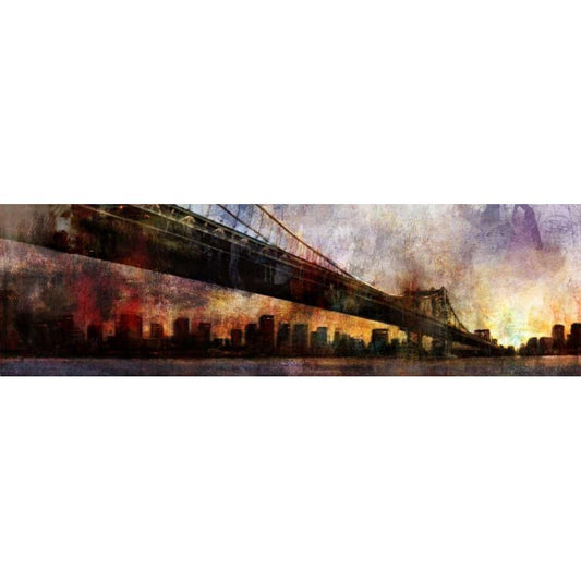 Under the Manhattan Bridge Black Modern Wood Framed Art Print with Double Matting by Roko, Ken