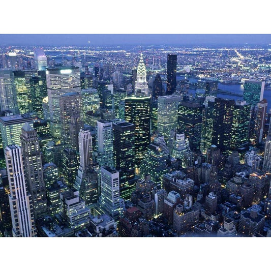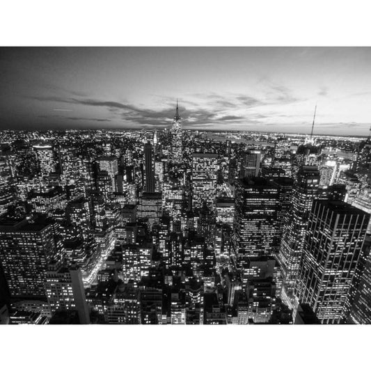 Manhattan skyline at dusk, NYC Black Modern Wood Framed Art Print with Double Matting by Setboun, Michel