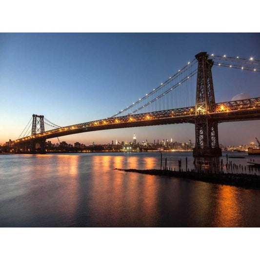 Brookyn bridge and Downtown skyline, NYC Black Modern Wood Framed Art Print with Double Matting by Setboun, Michel