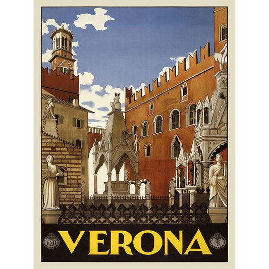 Verona, 1938 Black Modern Wood Framed Art Print with Double Matting by Anonymous