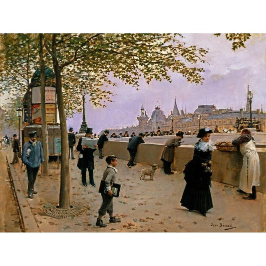 On the Banks of the River Seine Black Modern Wood Framed Art Print with Double Matting by Beraud, Jean