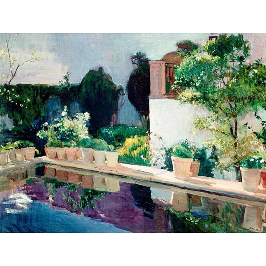 Palace of Pond, Royal Gardens in Seville Black Modern Wood Framed Art Print with Double Matting by Sorolla y Bastida, Joaquin